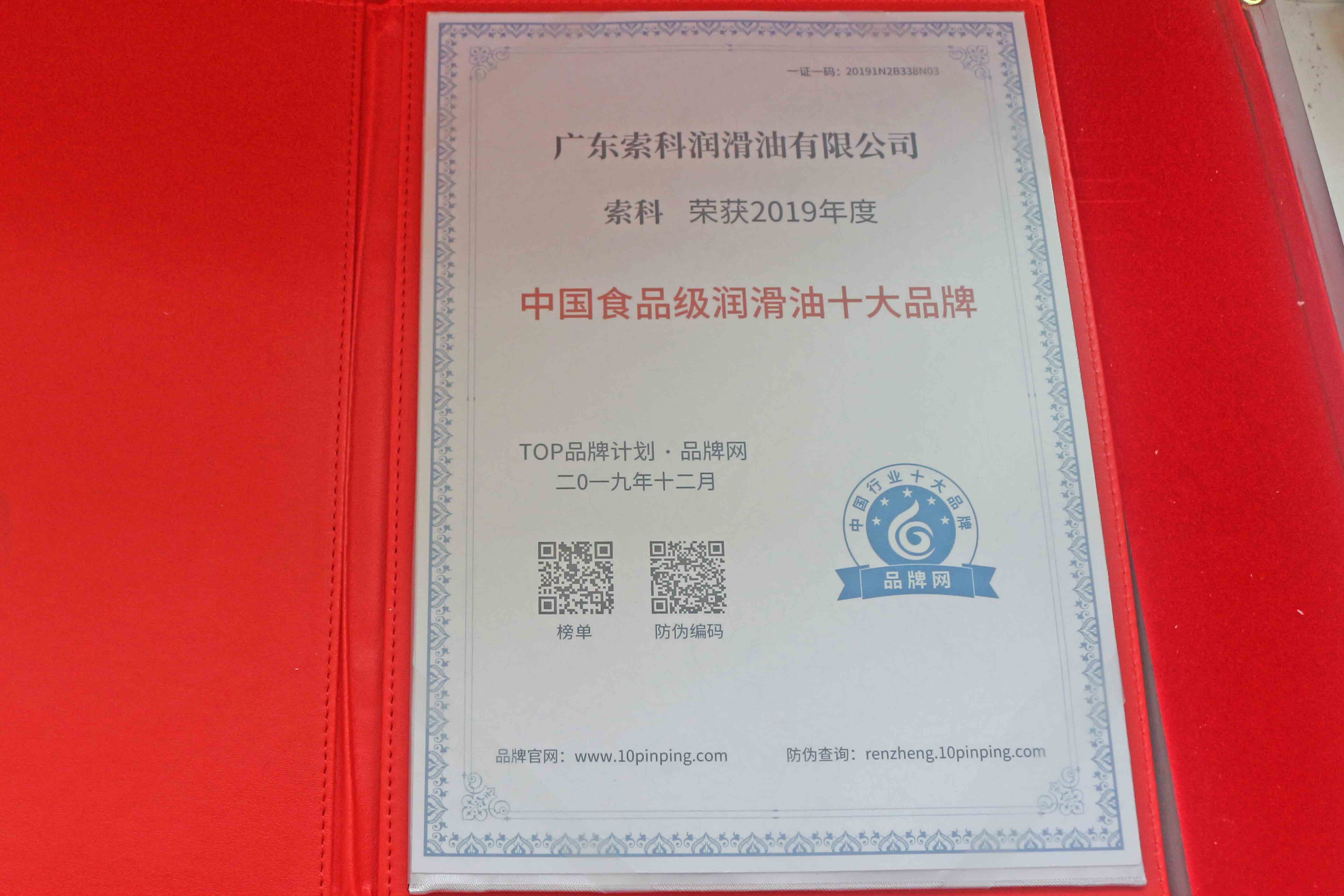 由品牌網聯合消費者發起的“2019年度中國食品級潤滑油行業十大品牌”評選活動完美落下帷幕,本次投票活動面向全國食品級潤滑油行業,是國內食品級潤滑油少有的大型權威品牌評選活動。索科潤滑油憑著優質的產品質量、實力與良好的消費口碑,在行業上眾多的優秀潤滑油脂品牌中脫穎而出,喜獲“中國食品級潤滑油行業”十大品牌榮譽稱號
