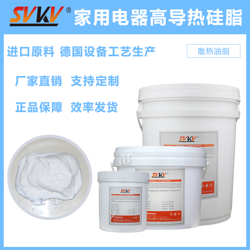 索科SVKV家用電器高導(dǎo)熱硅脂耐高低溫,可適用溫度范圍廣,不易出現(xiàn)風(fēng)干硬化或熔化現(xiàn)象,有利于提高器件導(dǎo)熱效果,改善熱轉(zhuǎn)移狀況。
