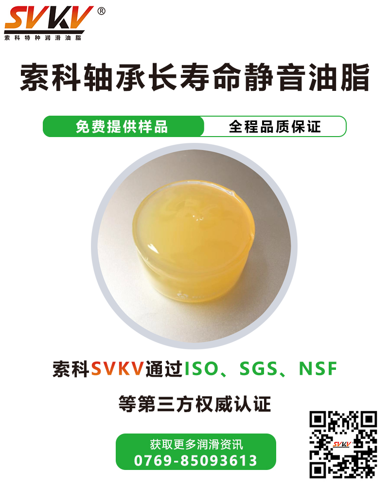 索科SVKV軸承長壽命靜音油脂是采用特殊的全合成油和獨特的添加劑制成,組織結構平滑,油脂細膩,具有較高的清潔度并加有抗氧、防銹等添加劑,具有良好的潤滑性和高低溫性能,達到延長使用壽命。
