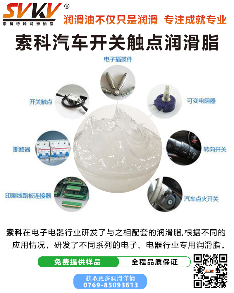 索科SVKV汽車開關觸點潤滑脂性能優點:
