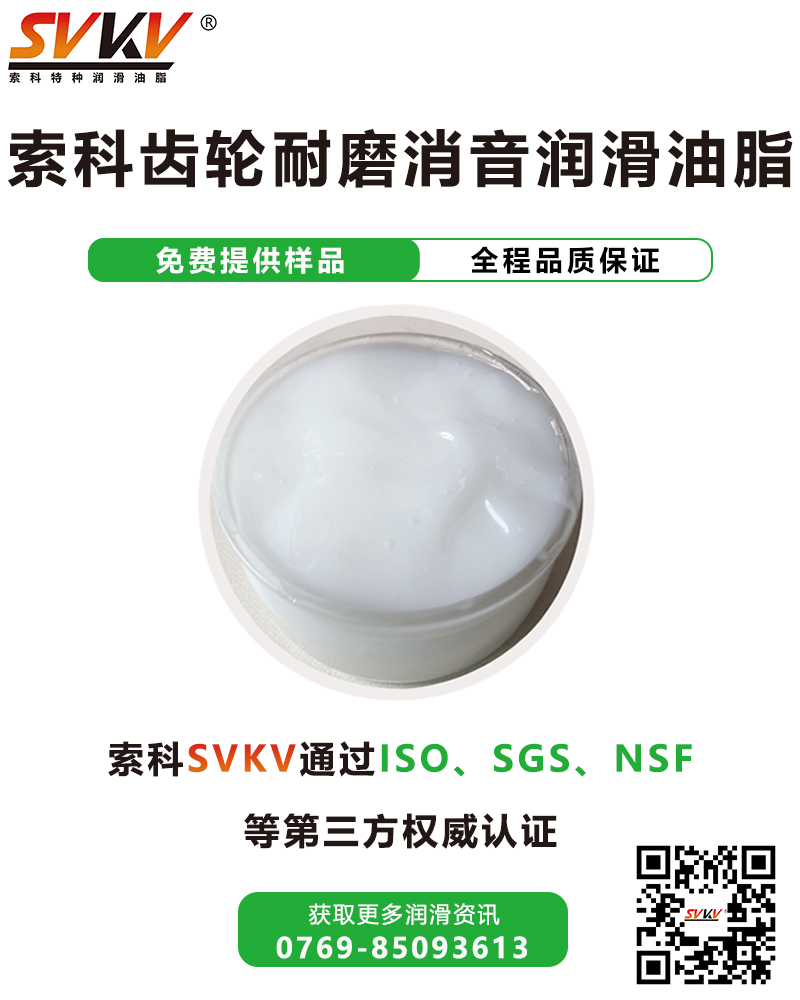 廣東索科潤滑油有限公司是一家致力于裝配產品使用特種潤滑脂的研發、生產、定制、服務為一體的專業性石化企業。致力為制造業客戶,提供專業的選油方案,協助客戶解決產品裝配時的潤滑難題,還可根據客戶特殊需求訂做適合的潤滑油品。有效提高產品性能、減低維護成本,索科助力制造業高端化發展! 主要產品有: 齒輪消音潤滑脂|高溫潤滑脂|食品級潤滑脂|齒輪消音潤滑脂|防水潤滑脂 導電油脂|軸承油|硅油|干性皮膜潤滑劑|低溫潤滑脂|阻尼脂|全氟油脂