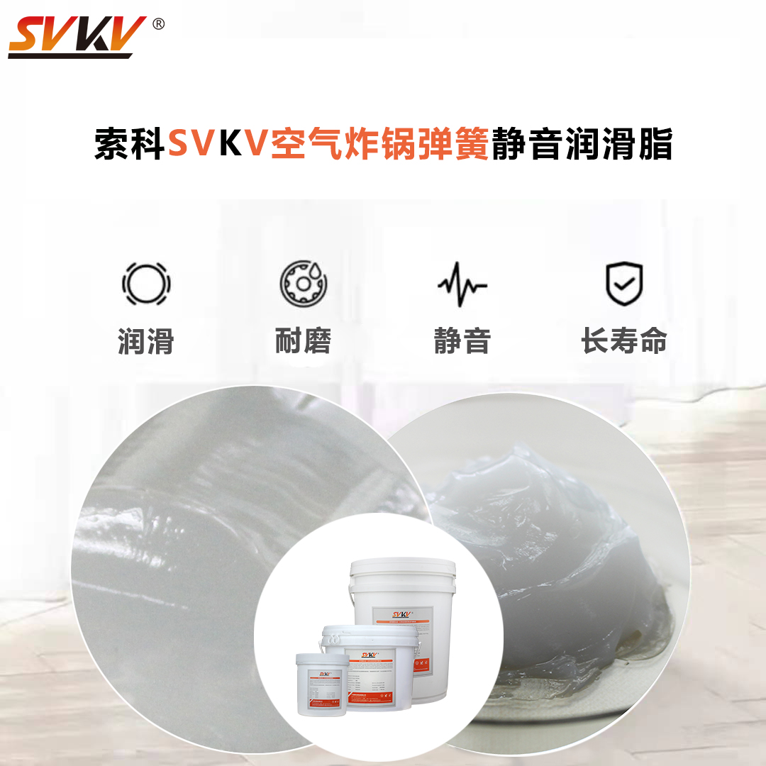 索科為空氣炸鍋彈簧提供潤滑解決方案,降本增效,適合的潤滑脂能有效潤滑,延長壽命。索科提供空氣炸鍋彈簧靜音潤滑脂0769-85093613免費樣品,全程品質保證!