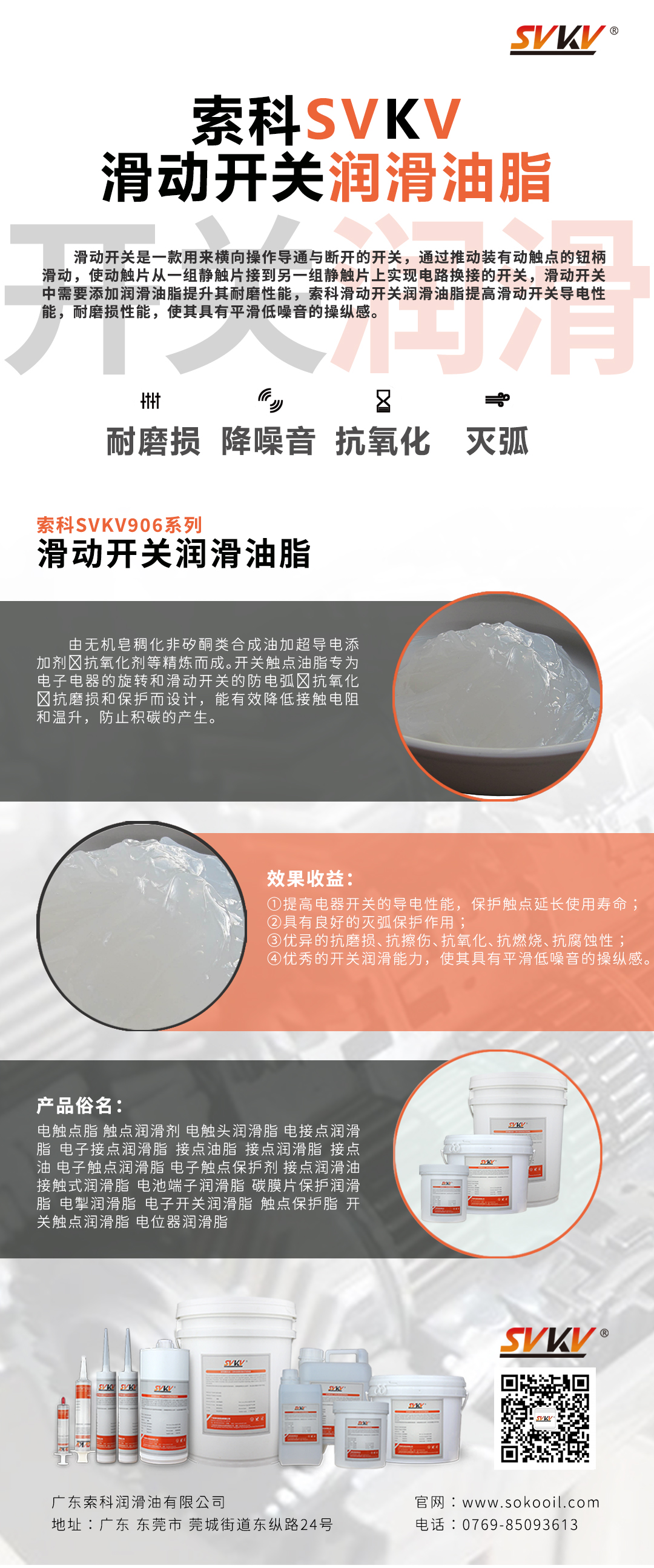 索科為企業(yè)提供潤(rùn)滑方案,降本增效,適合的潤(rùn)滑脂能有效提升導(dǎo)電性能,減少磨損,延長(zhǎng)產(chǎn)品壽命。索科提供滑動(dòng)開(kāi)關(guān)潤(rùn)滑油脂0769-85093613免費(fèi)樣品,全程品質(zhì)保證!