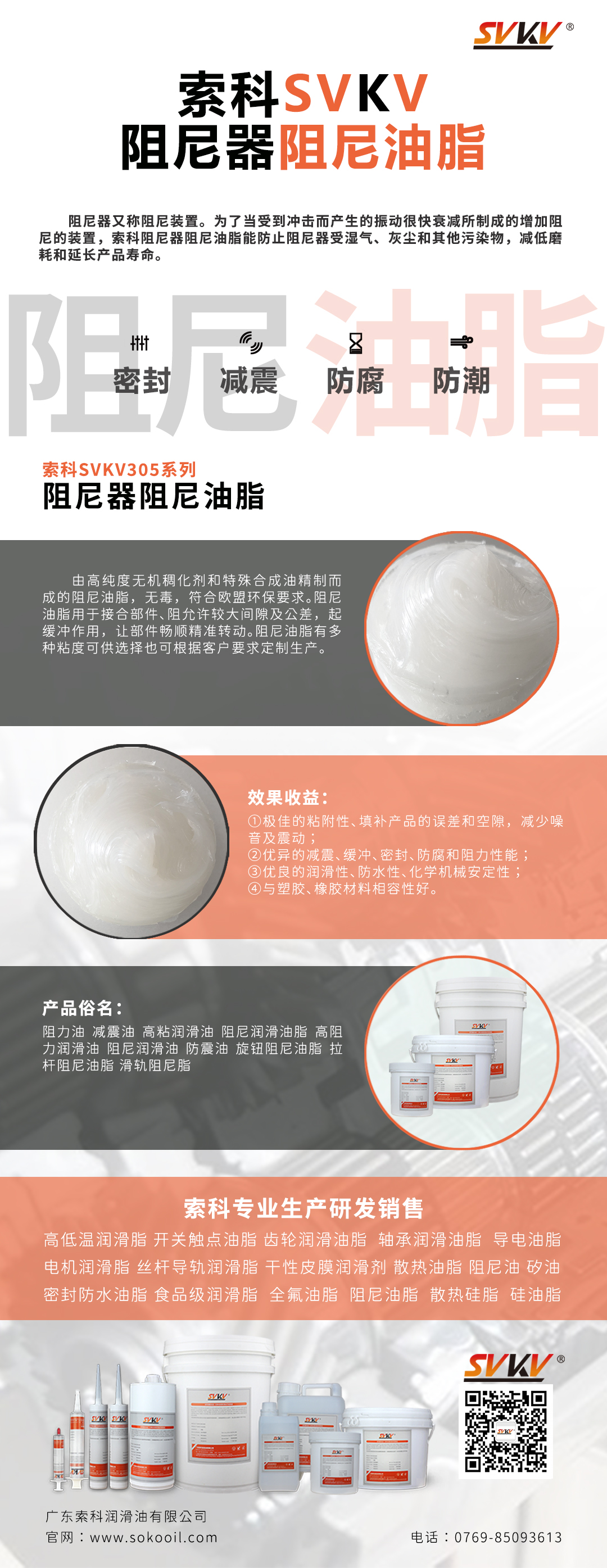 索科為企業(yè)提供潤(rùn)滑方案,降本增效,適合的阻尼油脂能有效減少噪音,索科提供阻尼器阻尼油脂0769-85093613免費(fèi)樣品,全程品質(zhì)保證!