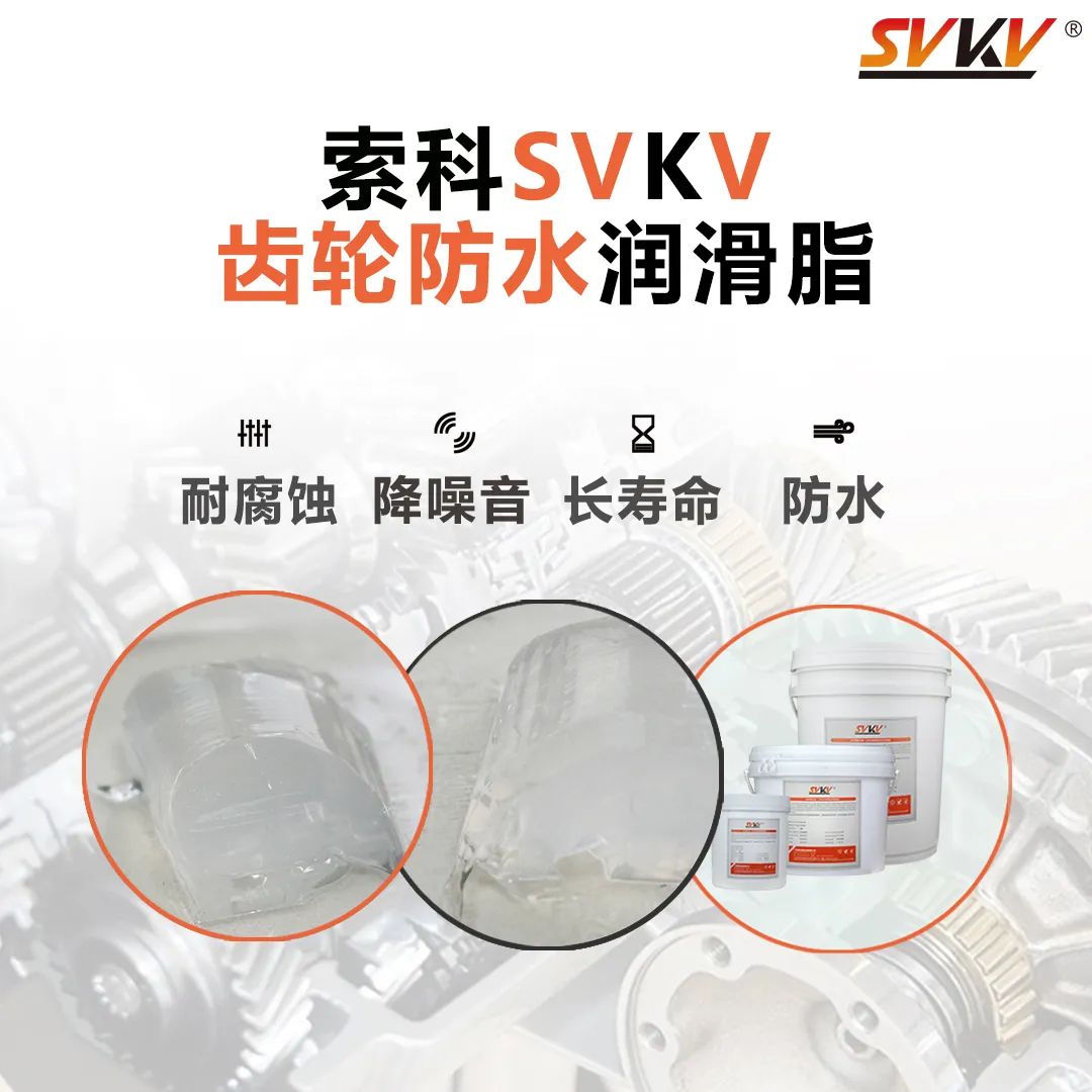 在少數電動產品中,齒輪會不可避免的和水接觸,此時為了避免齒輪潤滑脂因接觸到水導致的問題,選擇潤滑脂需要考慮其防水性能,索科SVKV665系列齒輪防水潤滑脂能夠兼顧降噪音及防水性能,滿足方式其潤滑需求。