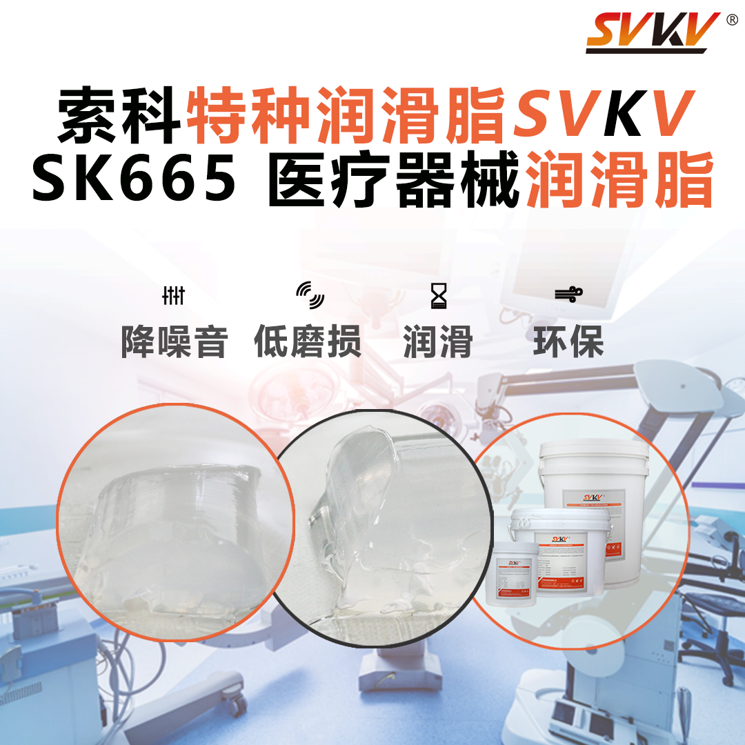推薦索科SVKV SK665系列醫療器械潤滑脂。符合FDA和USDA的法規和標準,并通過USDA/NSF H-1食品級認證和ISO9001國際質量體系認證,保障醫療安全,可運用于醫療器械生產,藥品生產等關鍵部位。索科SVKV醫用級潤滑脂能有效的降低噪音,減少機械產品的磨損、延長其壽命并降低維護頻率,保障醫療設備的安全生產和使用。